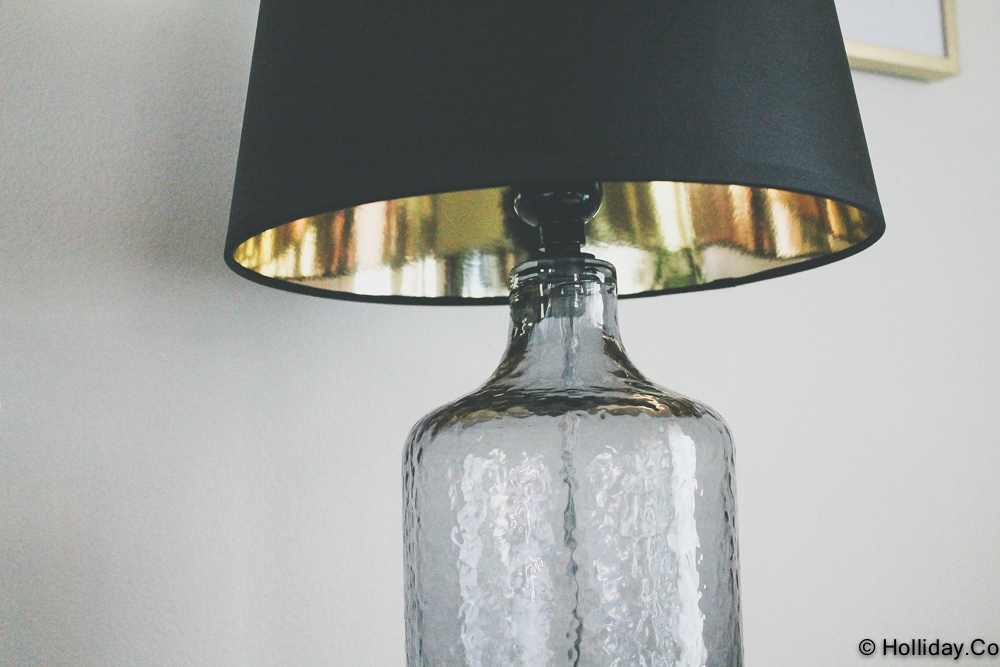 The lampshades are black and I love the drama they add to the space. The underside of the lampshades are gold. What a pop of interest they add to the space! I wanted to keep the entire look simple and clean. But I tried to add in interest with different items and make it personal too. I love vintage and antique items so including one of my antique typewriters in the space added some personality. Don’t expect the space to stay exactly the same. I will continue to style the area but try to keep it simple too. The oversized frames on the wall keep the wall design simple. I like that and can’t wait to add pictures!