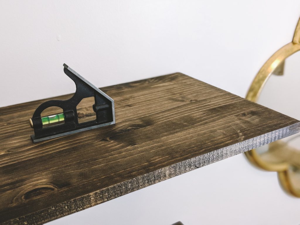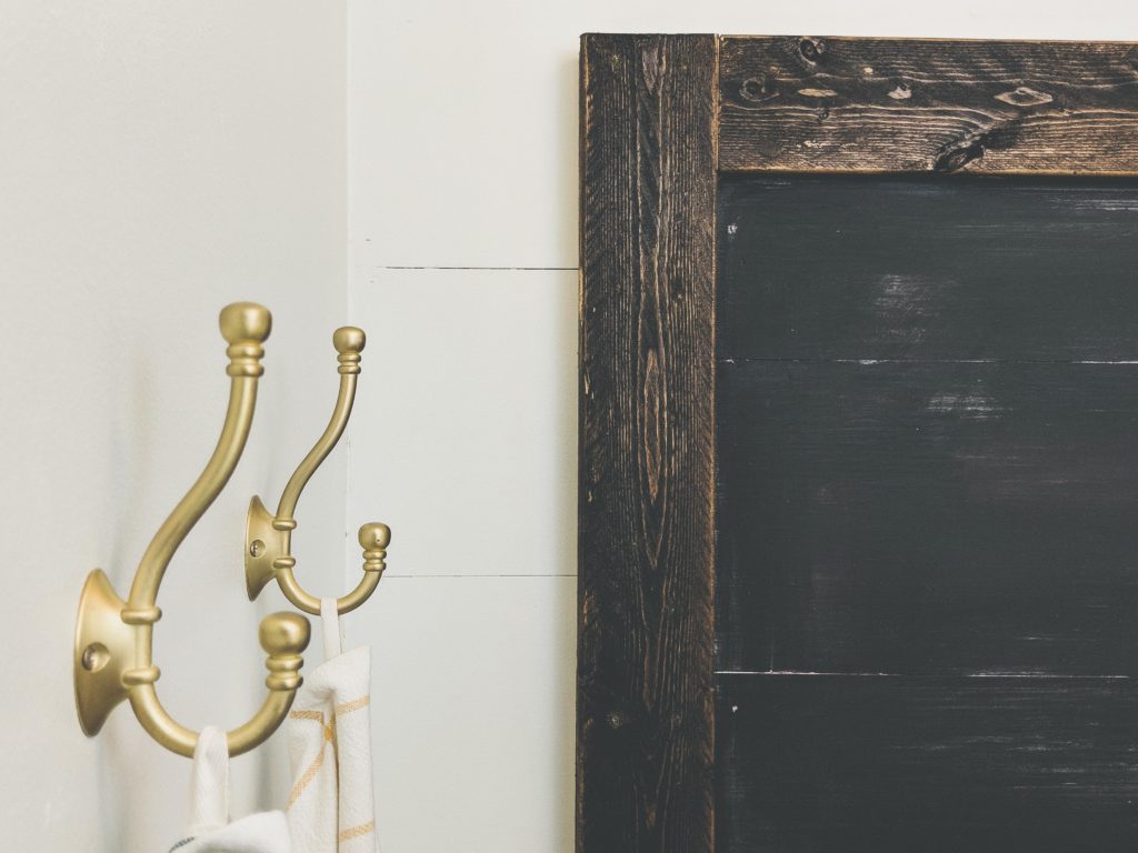 Lastly, the space needed something on the walls, so I decided on a DIY Chalkboard and DIY shelves. We bought one stain grade panel, which I cut it in half and stained. Then I hung it on brackets I purchased. That’s an easy project I also completed in the laundry room too.