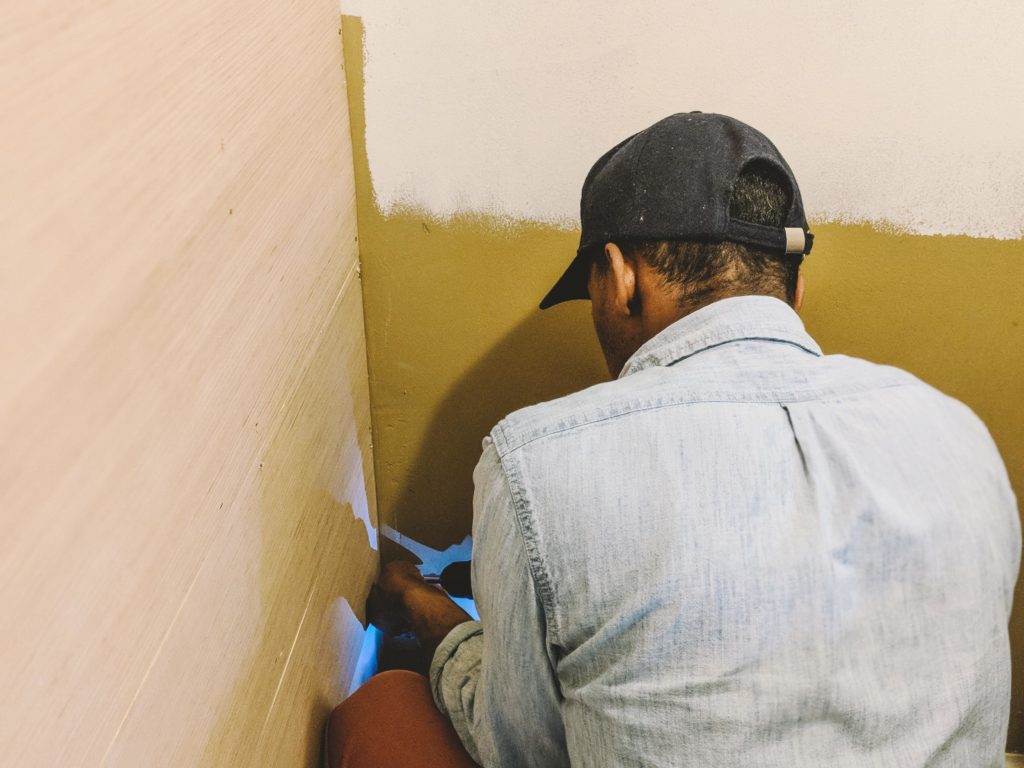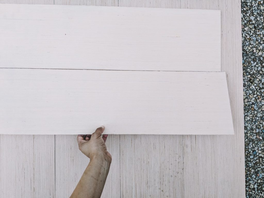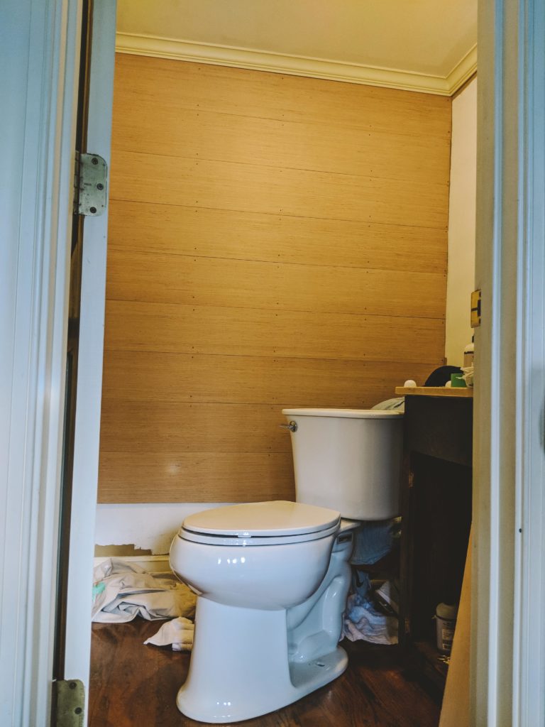 To start, I had a couple of cans of paint, some plywood strips, scrap wood, and some extra accessories around the home. After polling my Instagram community, though it was close, Sherwin Williams Alabaster won the vote. I was very happy with that choice because the powder room is small. I definitely didn’t want it to appear too dark or drab. Since I wasn’t updating the dark wood floors I determined that the white was really the best choice. Even better, I had enough paint on hand to complete the entire space. Yeah, for money saved!