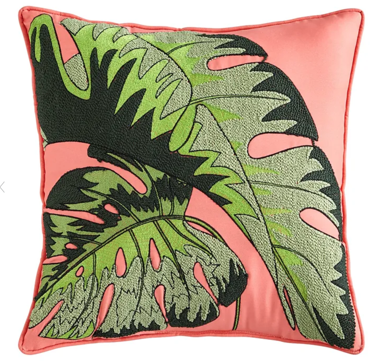 Embroidered Tropical Leaf 17″ Pillow
