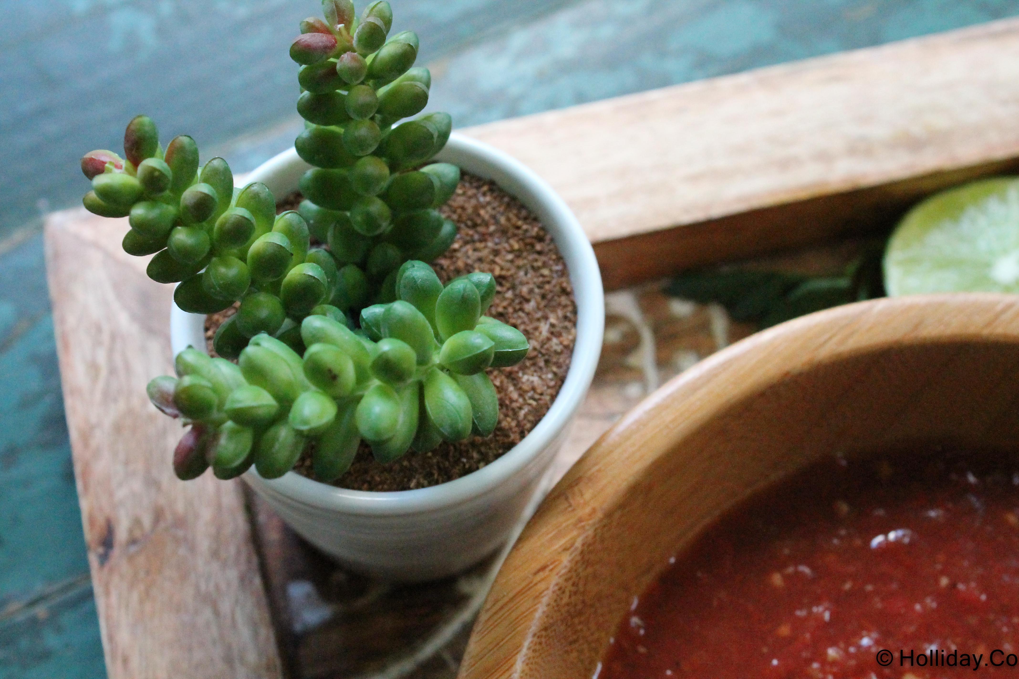 The first thing you’ll want to do is fill your tray with the required items. You’ll need a large bowl for your tortilla chips so start with that. If you’re feeling up to and have a little time, make your own homemade tortilla chips. Next, place the salsa on the tray. 2 Sisters Salsa has three blends of salsa – Cajun, Fiesta, and Jalapeno. If you think your guests would be interested, then put out more than one salsa blend.